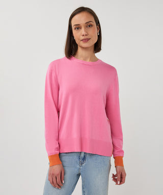 Long Sleeve Striped Sweater - Rose