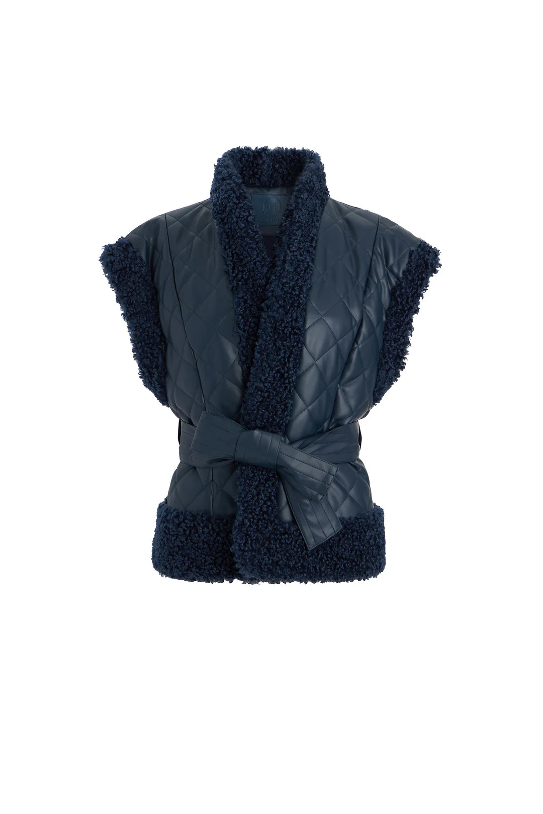 -Quilted vegan leather with curly sherpa trim