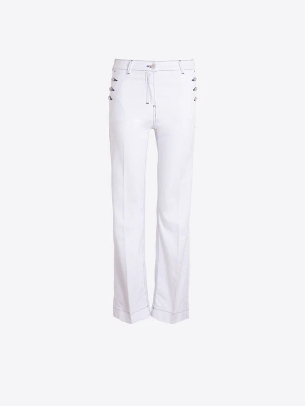 Straight Trousers with Side Button - White